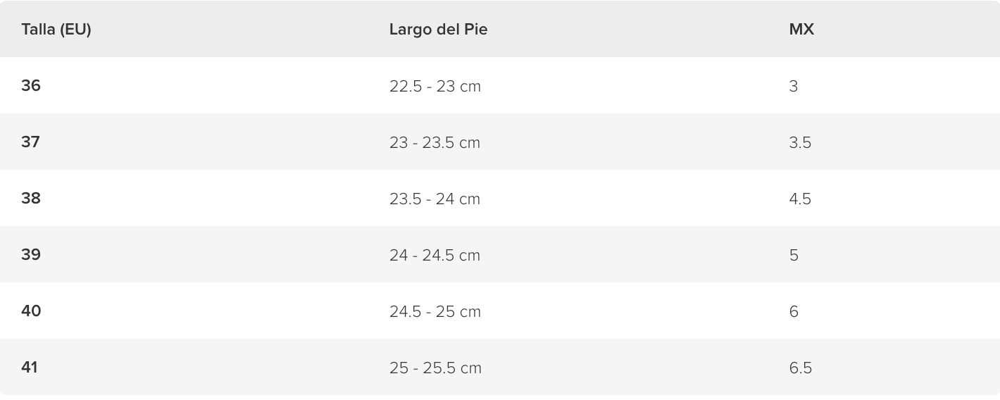 Pointure Longueur (De, mm) Longueur (À, mm) Largeur (De, mm) Largeur (À, mm)
